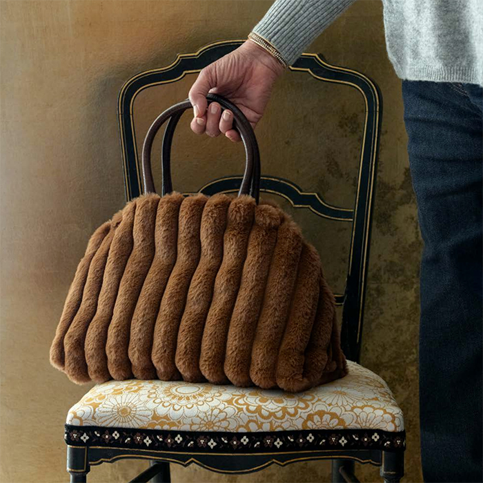 Weiches Kunstpelz aus Polyester, geeignet für die Herstellung von dekorativen Accessoires wie Kissen, Umhänge, Taschen usw. Das Material ist strapazierfähig, angenehm anzufassen und pflegeleicht, daher ist es eine ausgezeichnete Wahl für warme und elegante Inneneinrichtungen.