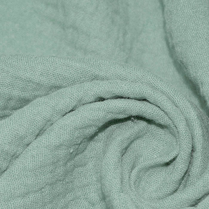 Beim Anfassen weiches atmungsaktives saugfähiges Gewebe, das aus zwei Lagen Musselin besteht. Wegen seiner Dichte ist es für Kleidung und Accessoires für alle Jahreszeiten geeignet, wie beispielsweise Tuniken, Kleider, Kinderkleidung, Umhänge, Schals usw.