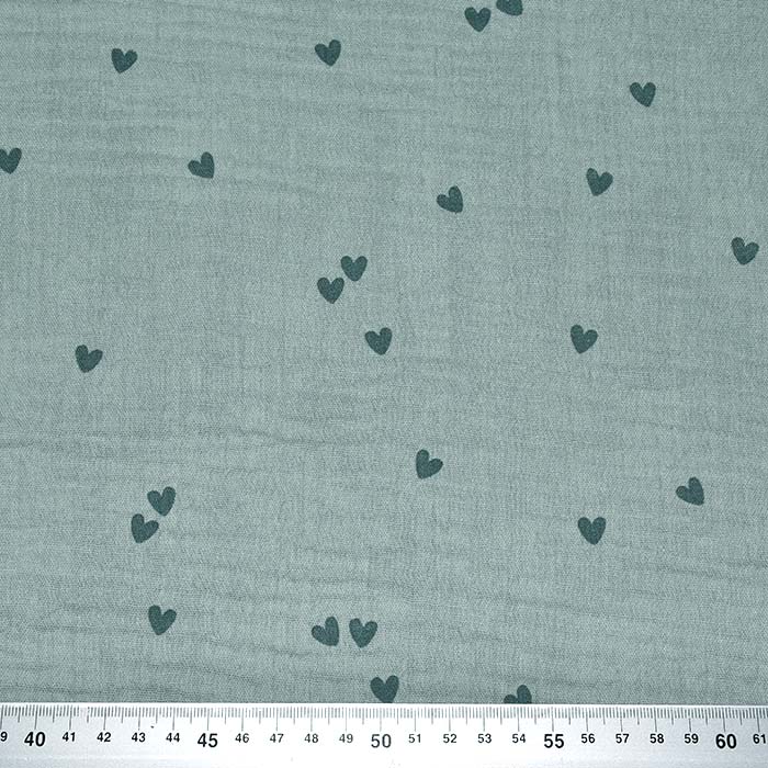 Beim Anfassen weiches atmungsaktives saugfähiges Gewebe, das aus zwei Lagen Musselin besteht. Wegen seiner Dichte ist es für Kleidung und Accessoires für alle Jahreszeiten geeignet, wie beispielsweise Tuniken, Kleider, Kinderkleidung, Umhänge, Schals usw.