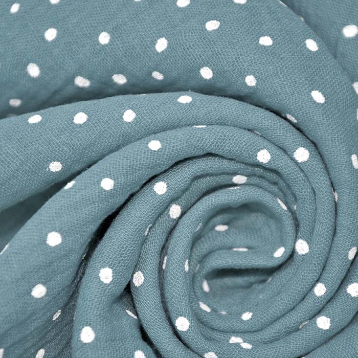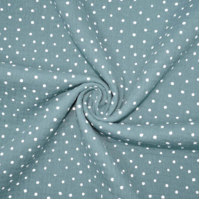 Beim Anfassen weiches atmungsaktives saugfähiges Gewebe, das aus zwei Lagen Musselin besteht. Wegen seiner Dichte ist es für Kleidung und Accessoires für alle Jahreszeiten geeignet, wie beispielsweise Tuniken, Kleider, Kinderkleidung, Umhänge, Schals usw.