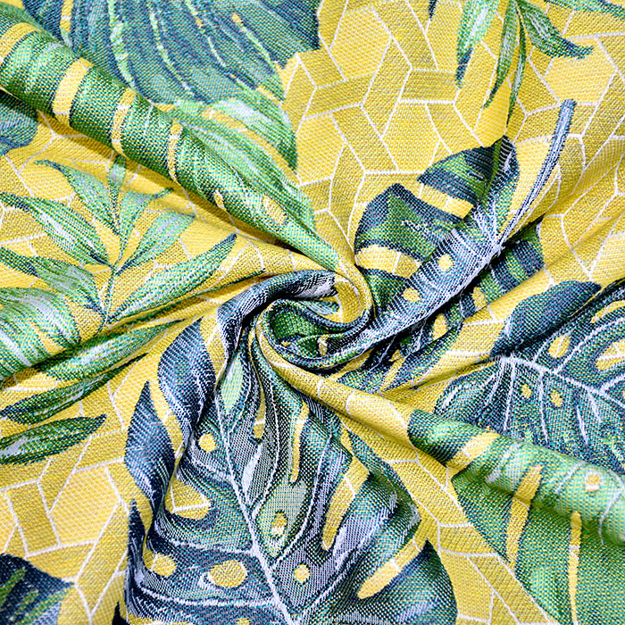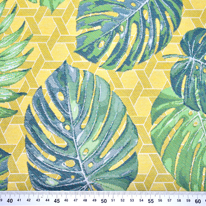 Recycelter Dekostoff, Jacquard, tropisch, 21299, gelb-grün
