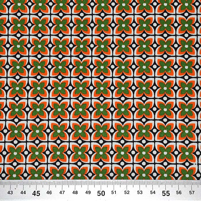 Satin, Baumwolle, floral, 29897-06, grün-orange