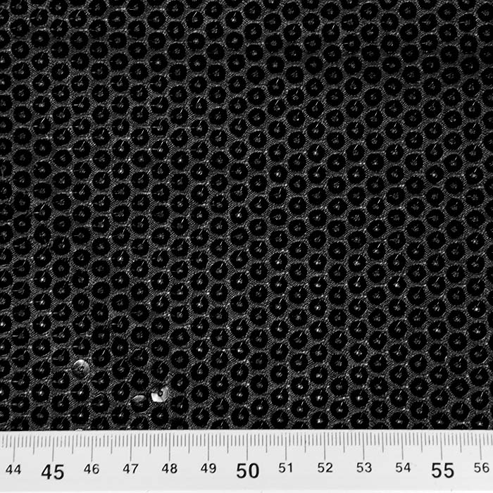 Dünnerer, glänzender Stoff mit Pailletten.