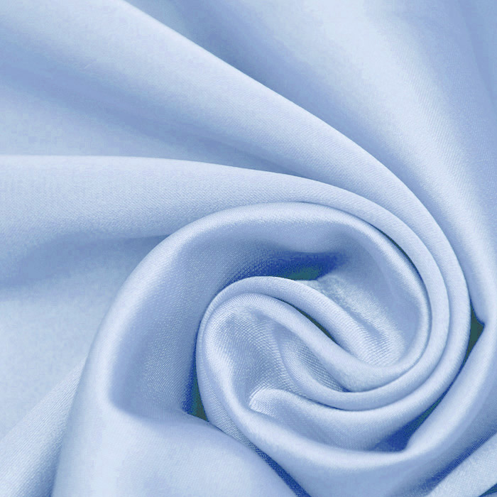 Polyester-Satin mit Elastan ist ein dünnes einfarbiges Gewebe mit starkem Glanz auf der rechten Stoffseite. Er ist weich und hat einen schönen Fall, deswegen wird er am häufigsten für festliche Kleidung, Kleider, Röcke, Tuniken, Blusen, Schals usw. verwendet.