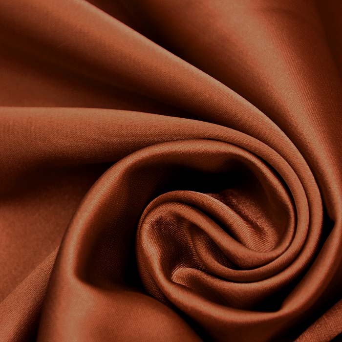 Polyester-Satin mit Elastan ist ein dünnes einfarbiges Gewebe mit starkem Glanz auf der rechten Stoffseite. Er ist weich und hat einen schönen Fall, deswegen wird er am häufigsten für festliche Kleidung, Kleider, Röcke, Tuniken, Blusen, Schals usw. verwendet.