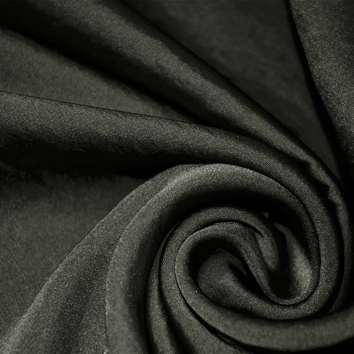 Polyester-Satin mit leichter Krepp-Struktur hat auf der rechten Seite einen zarten und subtilen Schimmer. Er ist weich und fällt schön, weshalb er am häufigsten für formelle Kleidung, Kleider, Röcke, Tuniken, Blusen, Schals usw. verwendet wird. Es kann auch für dekorative Zwecke verwendet werden, z. B. als Stoff für Zierkissen, Vorhänge, Tischdecken, Geschenktaschen aus Stoff usw.