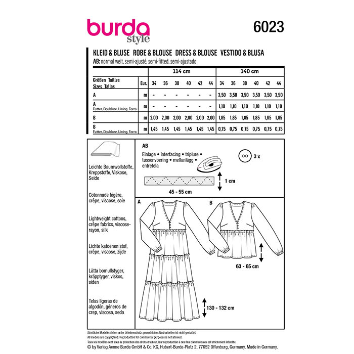 Schnittmuster, grün, Damenbluse und -kleid, 6023