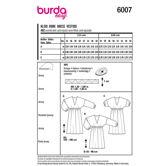 Das Schnittmuster für ein Damenpuffkleid verschiedener Längen.