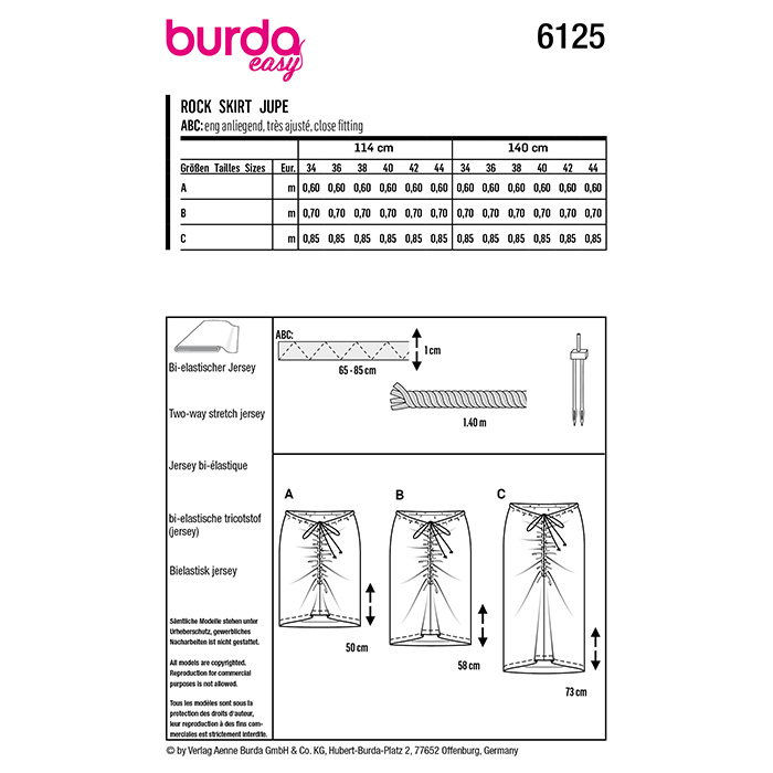 Schnittmuster, rot, Damenrock, 6125