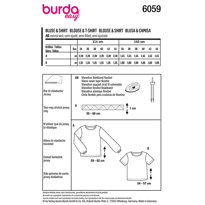 Schnittmuster, rot, Damenshirt, 6059