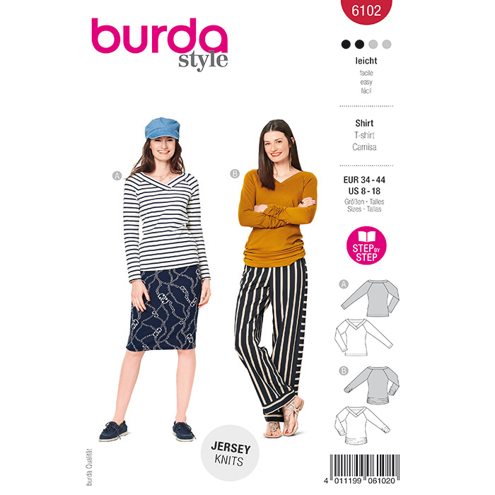 Das Schnittmuster für ein langärmeliges Damenshirt mit V-Ausschnitt.