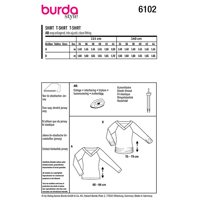 Schnittmuster, rot, Damenshirt, 6102