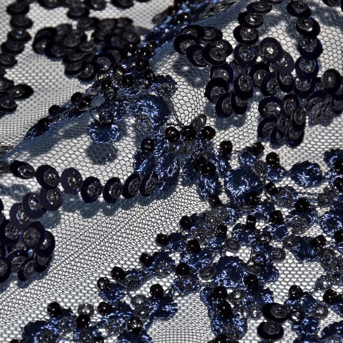 Spitze, dehnbar, floral, 25009-002, dunkelblau