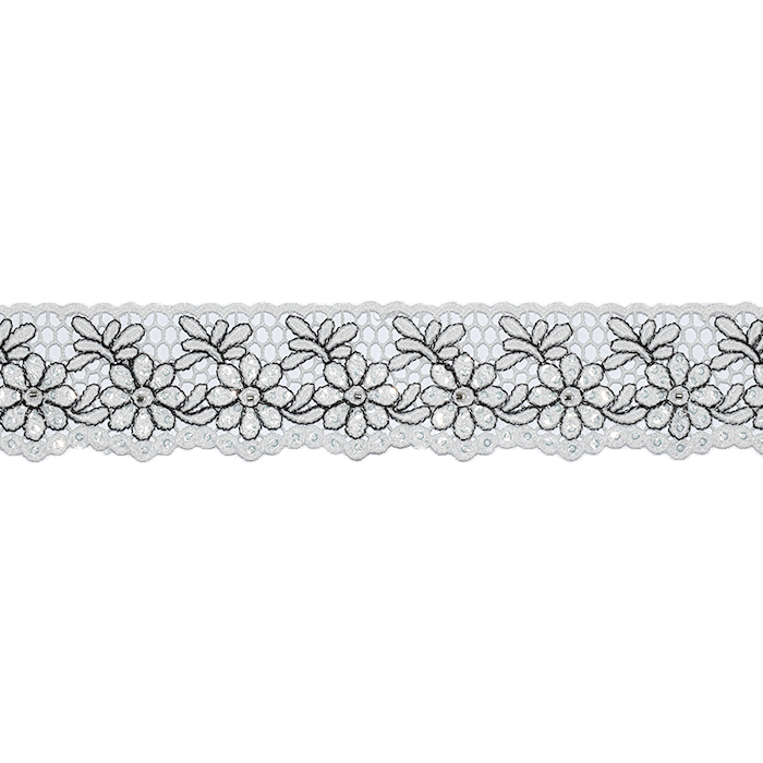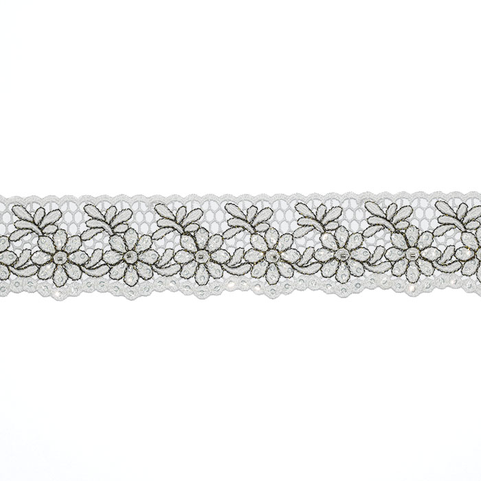 Spitze, floral, 35 mm, 28755-103, weiß-silbern