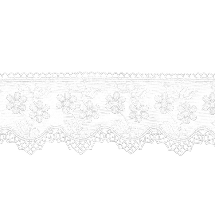 Spitze, gestickt, 85 mm, 23635-001, weiß