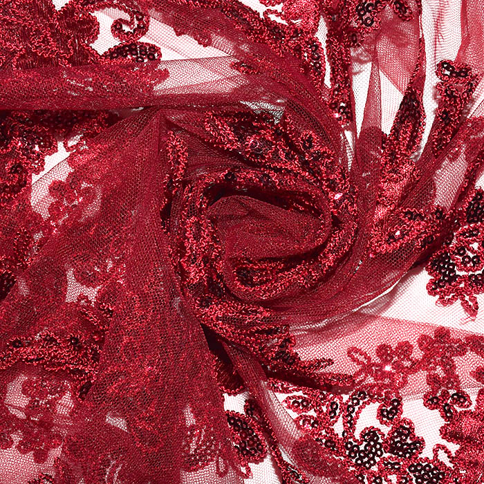 Spitze mit Pailletten, floral, 26198-460, bordeaux