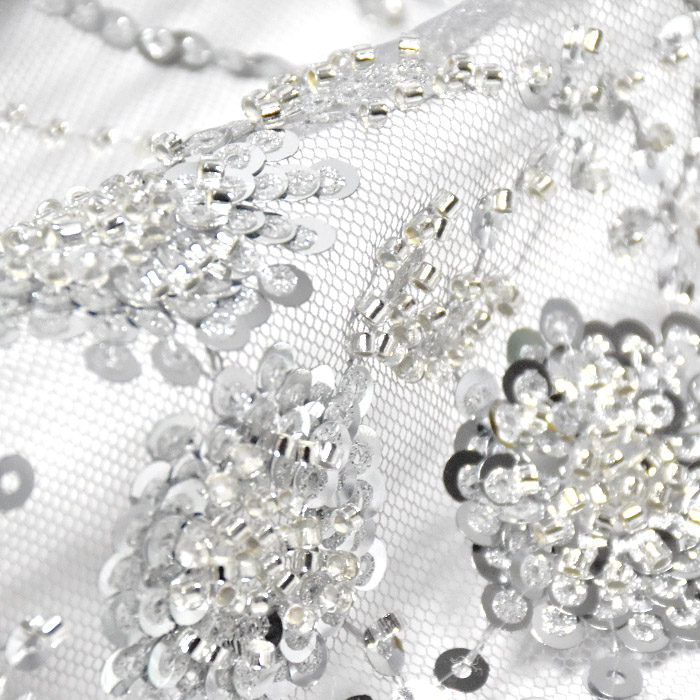 Spitze mit Pailletten, floral, 26290-555, silbern