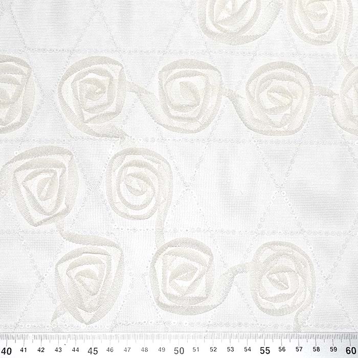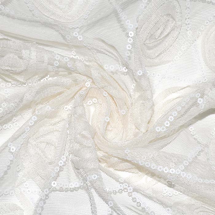 Elegante Stickerei auf Tüll, die hauptsächlich für formelle Kleidung verwendet wird, aber zunehmend auch in der Alltagsmode in Kombination mit verschiedenen Stoffen auftaucht.