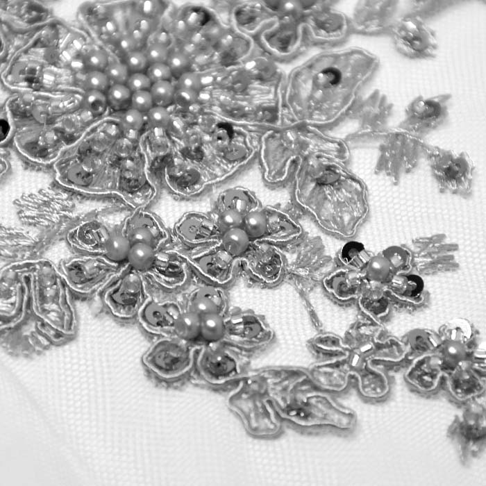 Spitze mit Pailletten, Ornament, 26657-555, grau