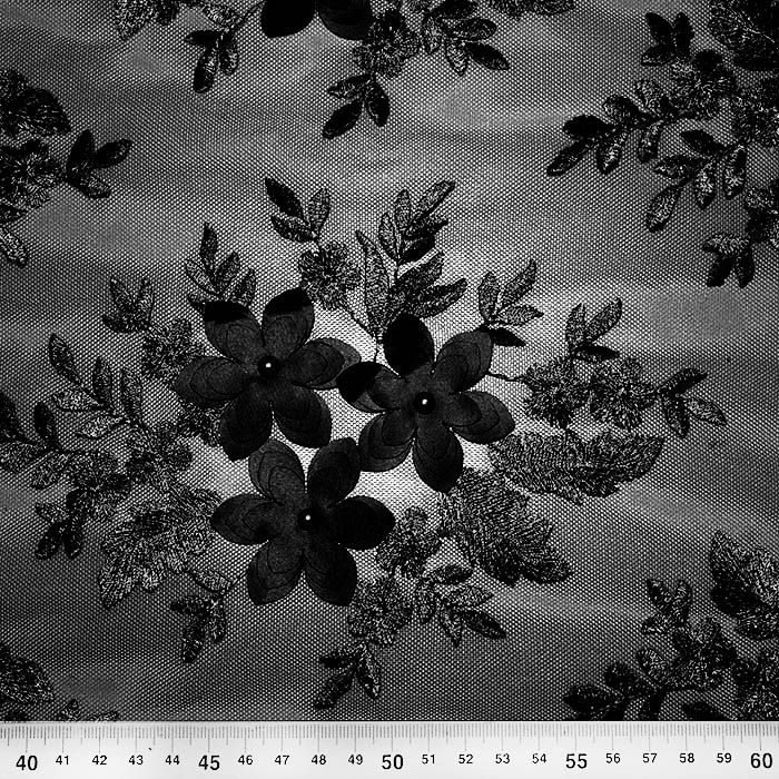 Spitze mit Perlen, floral, 25903-1001, schwarz