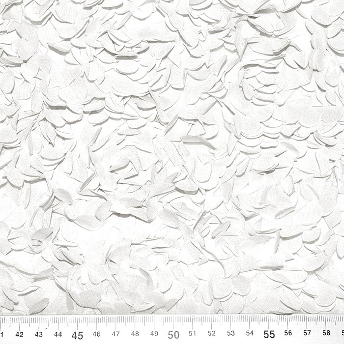 Elegante Stickerei auf Tüll, die vor allem für formelle Kleidung verwendet wird, aber auch zunehmend in der Alltagsmode in Kombination mit verschiedenen Stoffen auftaucht.
