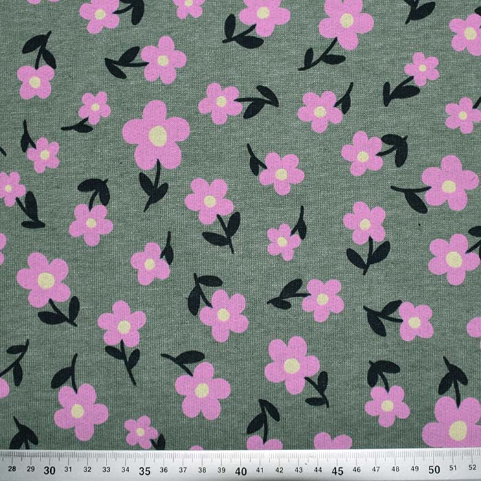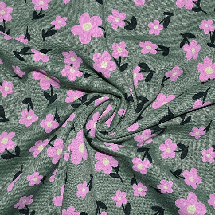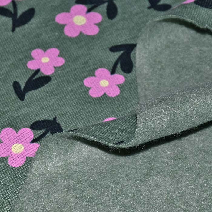 Sweatshirtstoff, flauschig, floral, 28454-017, grün