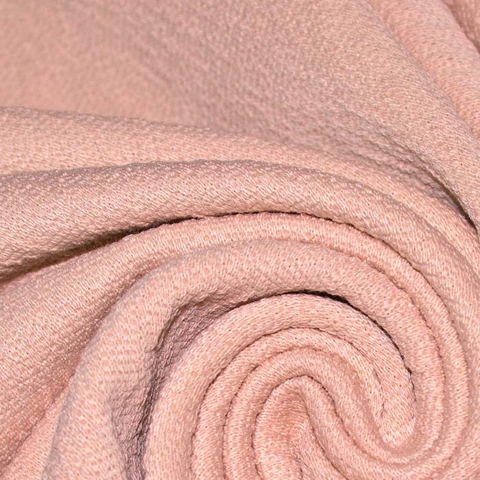 Krepp-Sweatshirtstoff ist ein Gewebe, das auf der rechten Seite eine körnige Oberfläche und auf der Rückseite kurze Noppen aufweist. Es ist weich und bequem und wird daher vor allem für verschiedene Sport- und Freizeitbekleidung, Trainingsanzüge, Hosen, Pullover, Sweatshirts, Morgenmäntel usw. verwendet.