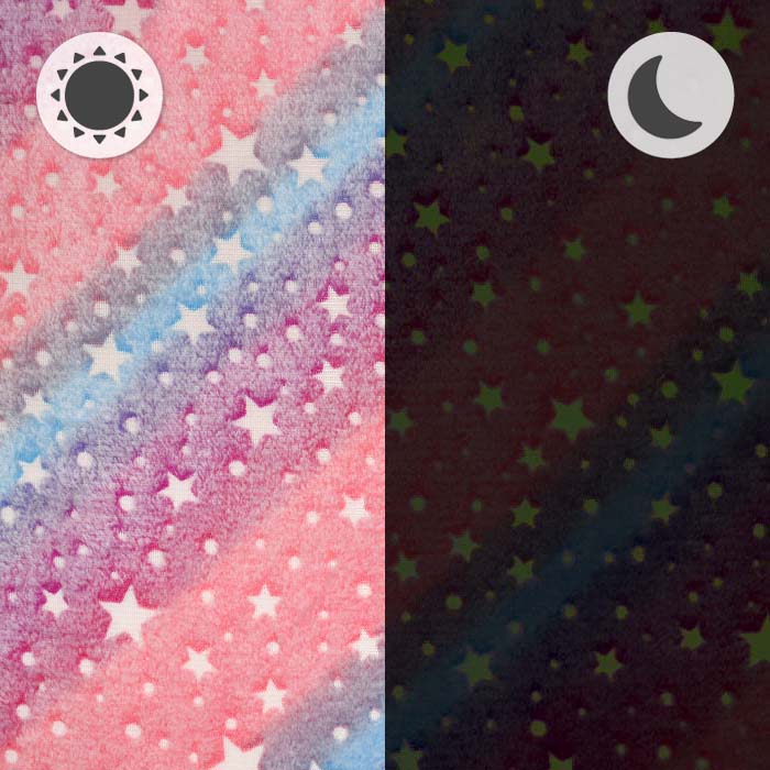 Warme, weiche und dichte Wirkware, die im Dunkeln leuchtet. Sie wird am häufigsten für Sportkleidung, Pullover, Cardigans, Schals, Handschuhe, Mützen, Morgenröcke, Kinderkleidung usw. verwendet, sowie für Decken, Spielzeug, Hausschuhe, Dekokissen u.Ä.