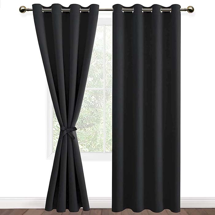Der Stoff besteht aus zwei Lagen, zwischen denen sich eine schwarze, undurchlässige Schicht befindet, die es ermöglicht, den Raum zu verdunkeln.