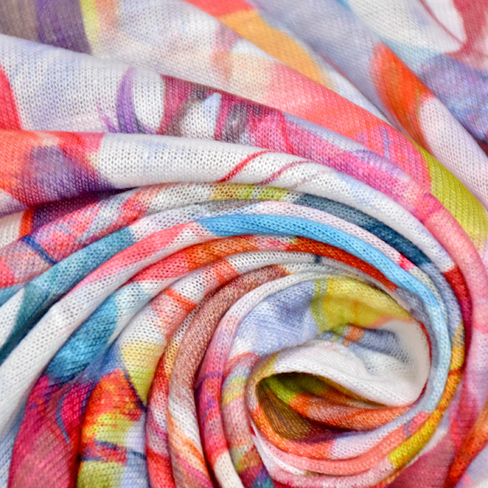 Dünne und leicht durchsichtige Polyesterwirkware, am besten geeignet für dünne Sommerkleidung, Tuniken, T-Shirts, Kleider, Schals usw.