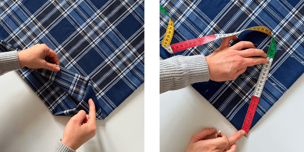 Falte den Stoff einmal der Länge und einmal der Breite nach, sodass du eine quadratische Form erhältst.