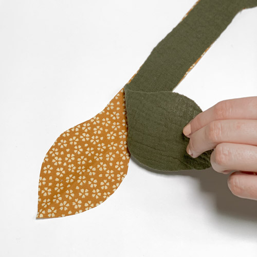 1. Mithilfe des Schnittmusters wird das Beißspielzeug aus zwei verschiedenen Materialien ausgeschnitten. Die beiden Formen werden aufeinander, Wange zu Wange, gestellt.