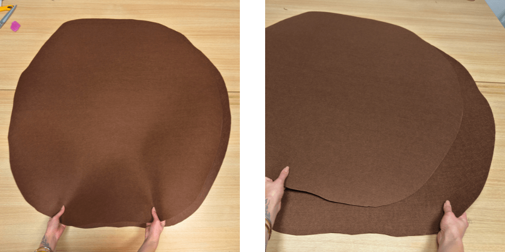 Aus zwei Filzlagen schneiden wir einen großen Kreis aus. Die Ränder müssen nicht perfekt rund sein, da wir so den Look eines Kekses erzielen.