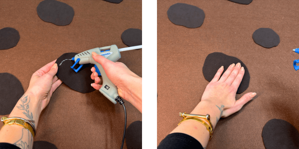 Die Kreise werden nach Belieben angeordnet und auf beide Filzlagen aufgeklebt.