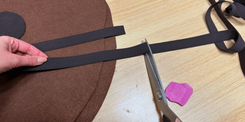 Wir schneiden zwei Gummibänder mit einer Länge von etwa 20 bis 30 cm zu.