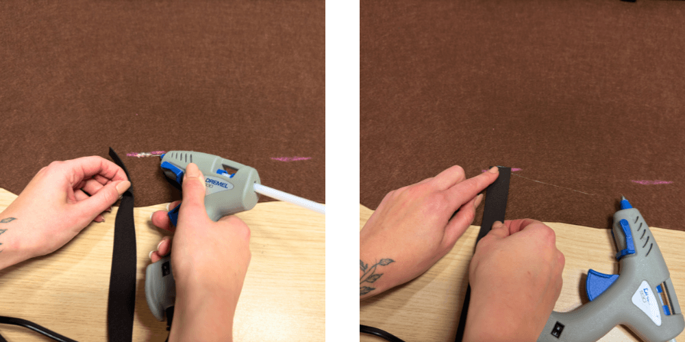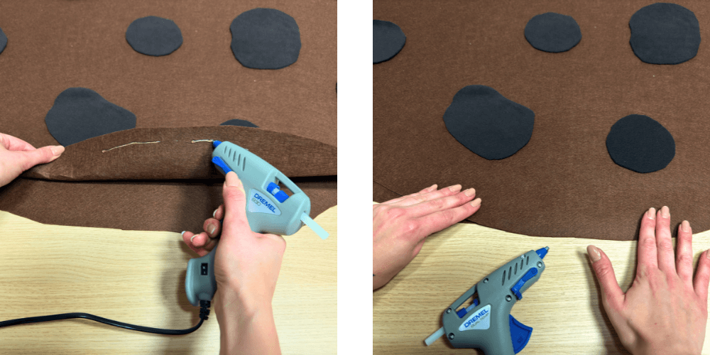 Für ein stabileres und kompakteres Aussehen kleben wir die Seiten zusammen, damit sich das Kostüm beim Gehen nicht öffnet.