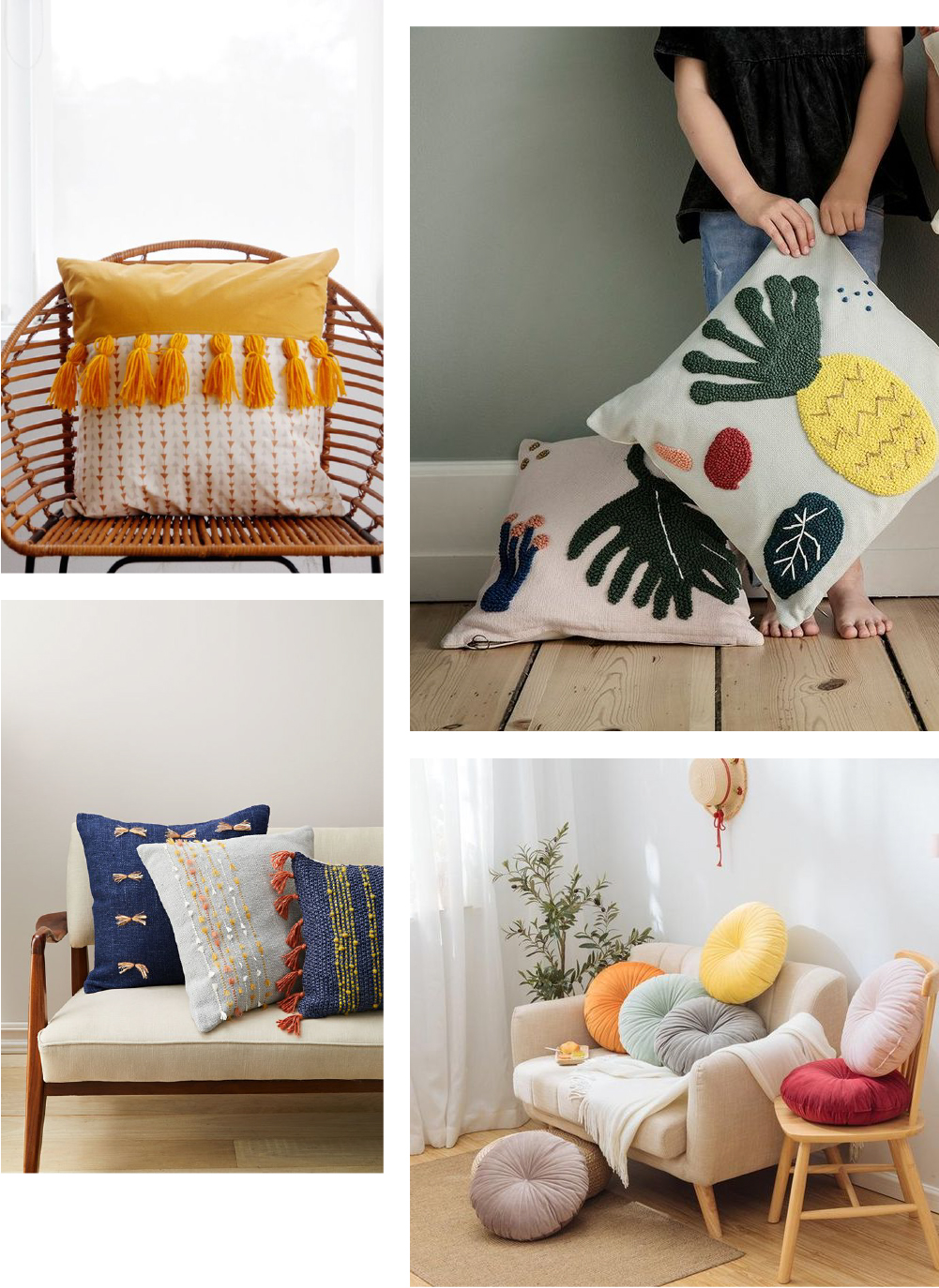 Wir sind uns wahrscheinlich alle einig, dass es Dekokissen nie zu viel gibt, außerdem kann man sie auch sehr schnell fertigen; So kann man das Wohnzimmer einfach mit neuen Motiven, Farben und Texturen auffrischen. Du kannst entweder bei der klassichen quadratischen Form bleiben oder der Fantasie freien Lauf lassen und mit Formen bzw. Dimensionen experimentieren. Dir stehen zahlreiche Stoffe zur Verfügung: leichte Dekostoffe, andere Dekostoffe, Samt, Jacquard, Kunstleder usw.