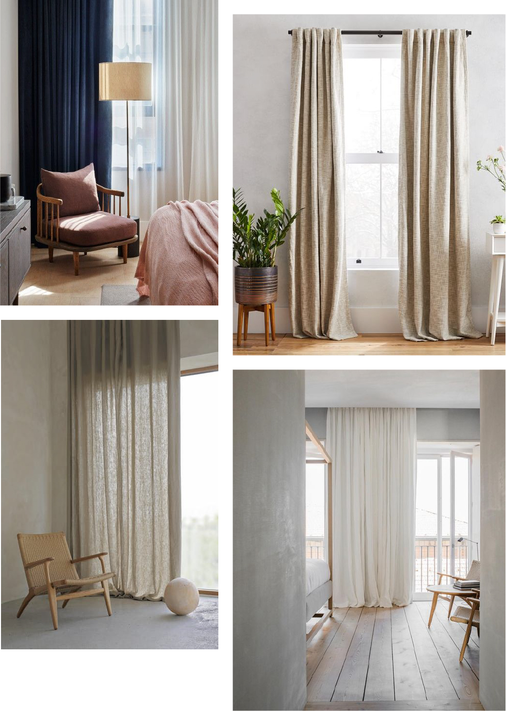 Einen hochwertigen Schlaf ermöglicht auch gute Verdunkelung, die mit einem Verdunkelungsvorhang erreicht wird. Diesen macht man aus mehrschichtigem Stoff mit beidseitiger Verarbeitung. Als zusätzliche Dekoration hingegen eignet sich eine dekorative Gardine. Für diese eignet sich Samt, sowie leichter und schwerer Dekostoff.