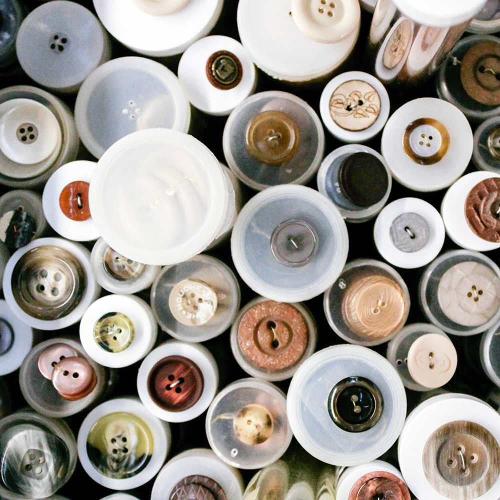 4. Der nächste Schritt ist die Auswahl von Gummibändern, Knöpfen und anderen Accessoires, die jeder Kreation das i-Tüpfelchen aufsetzen und sie auf die nächste Stufe heben. Sobald die Dame angezogen ist, wird das gesamte Zubehör von Hand auf den Stoff genäht.