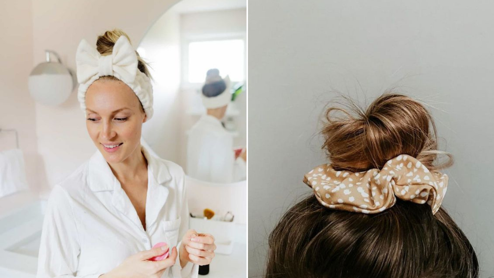 1. Zünden Sie zuerst eine sanft duftende Kerze an und machen Sie ruhige Musik an, die Sie begleiten wird. Nähen Sie schon im Vorhinein ein Haarband aus angenehmen und elastischem Baumwolljersey und setzen Sie es so auf, dass Ihnen die Haare nicht in Ihre Augen drängen werden. Stattdessen können Sie auch einen Scrunchie Haargummi benutzen, die Herstellungsanleitungen dazu können Sie sich hier anschauen.