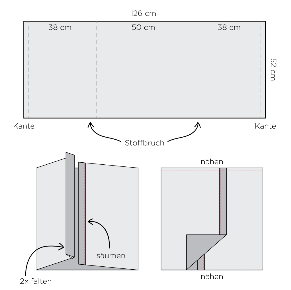 Wir haben eine Anleitung zur Fertigung des Kissenbezugs vorbereitet, welcher am Ende 50 x 50 cm messen wird.