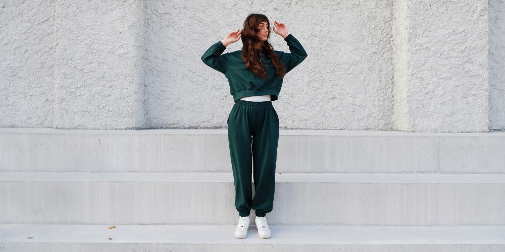 TA-DA! Wir haben auch den Unterteil der Jogginghose hergestellt und können nun zu jeder Jahreszeit ein perfektes, zum Oberteil passendes Set tragen.