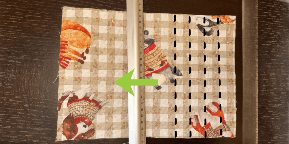 Wenn wir zwei Stoffteile (Außenstoff und Einlage) vorbereitet haben, markieren wir mit Kreide oder einem speziellen Stift, der sich mit Hitze entfernen lässt, Linien im Abstand von etwa 2 cm auf dem Stoff. Entlang dieser Linien nähen wir den Stoff zusammen.