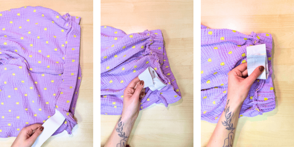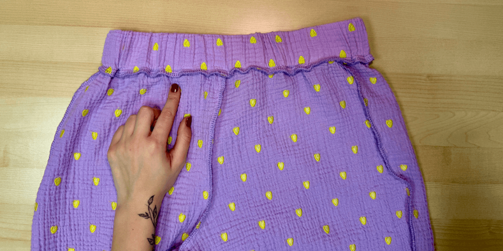 Verteilen Sie das Elastikband gleichmäßig im Bund und schließen Sie die Öffnung.