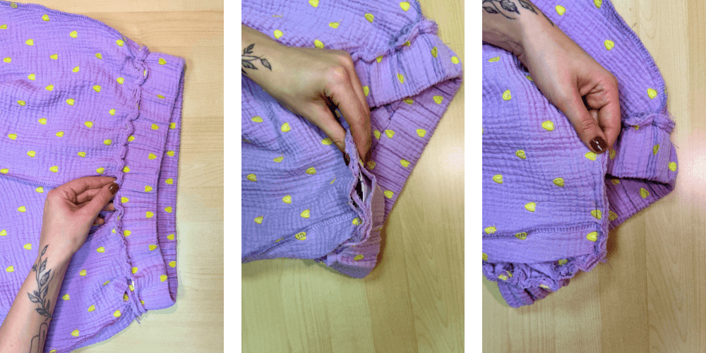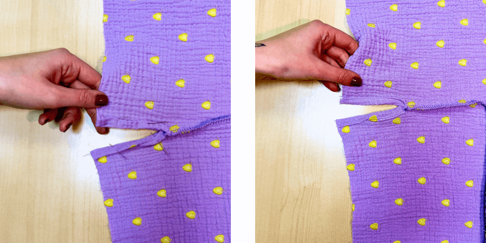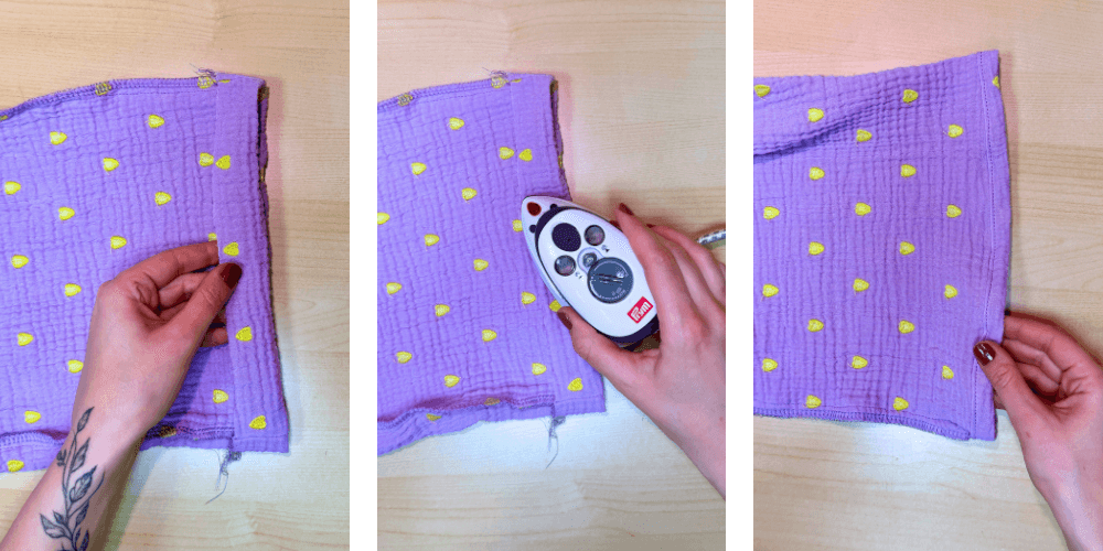 Versäubern Sie die Naht mit Overlock- oder Zickzackstich.