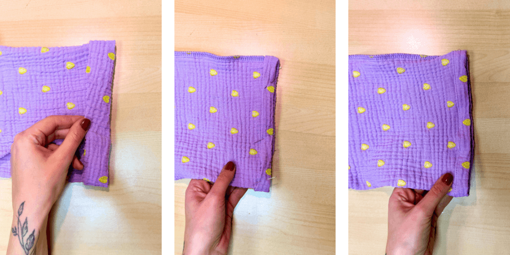 Den Schlitz falten Sie zweimal nach innen, bügeln ihn und steppen ihn knappkantig ab.
