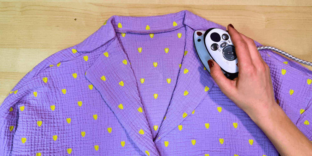 Wenden Sie den Kragen auf rechts und bügeln Sie ihn noch einmal sorgfältig.